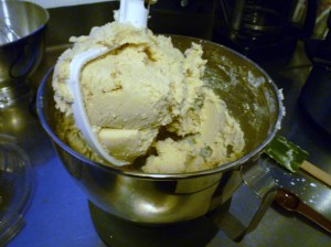 Cream together the butter, vanilla and sugar.  Add the flour and salt.  Mix until blended.  Mixture will be stiff.  If necessary, cover and refrigerate the dough for a few minutes.   At this point, the dough could be wrapped well and saved for future use.  It keeps for weeks in the fridge.  When you are ready to use it, remove from fridge and set it out until it softens.