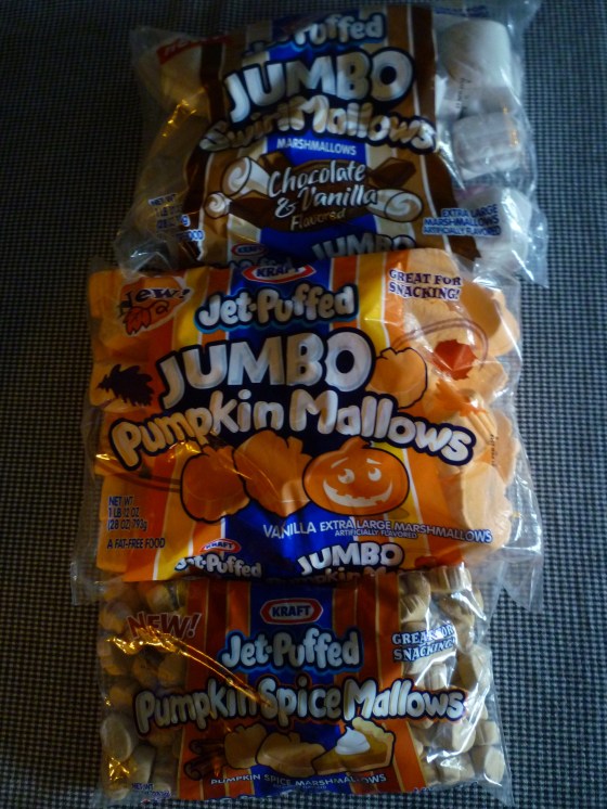 They were calling my name … so I had to bring them home with me. The wheels in my head were turning … I had ideas!!! I was feeling quite good … and somewhat organized … because I was sure that those pumpkin shaped marshmallows won’t last on Wal-Mart’s shelf very long. I kept walking down the aisles … sooo many cute Halloween things … but I did resist buying too much.