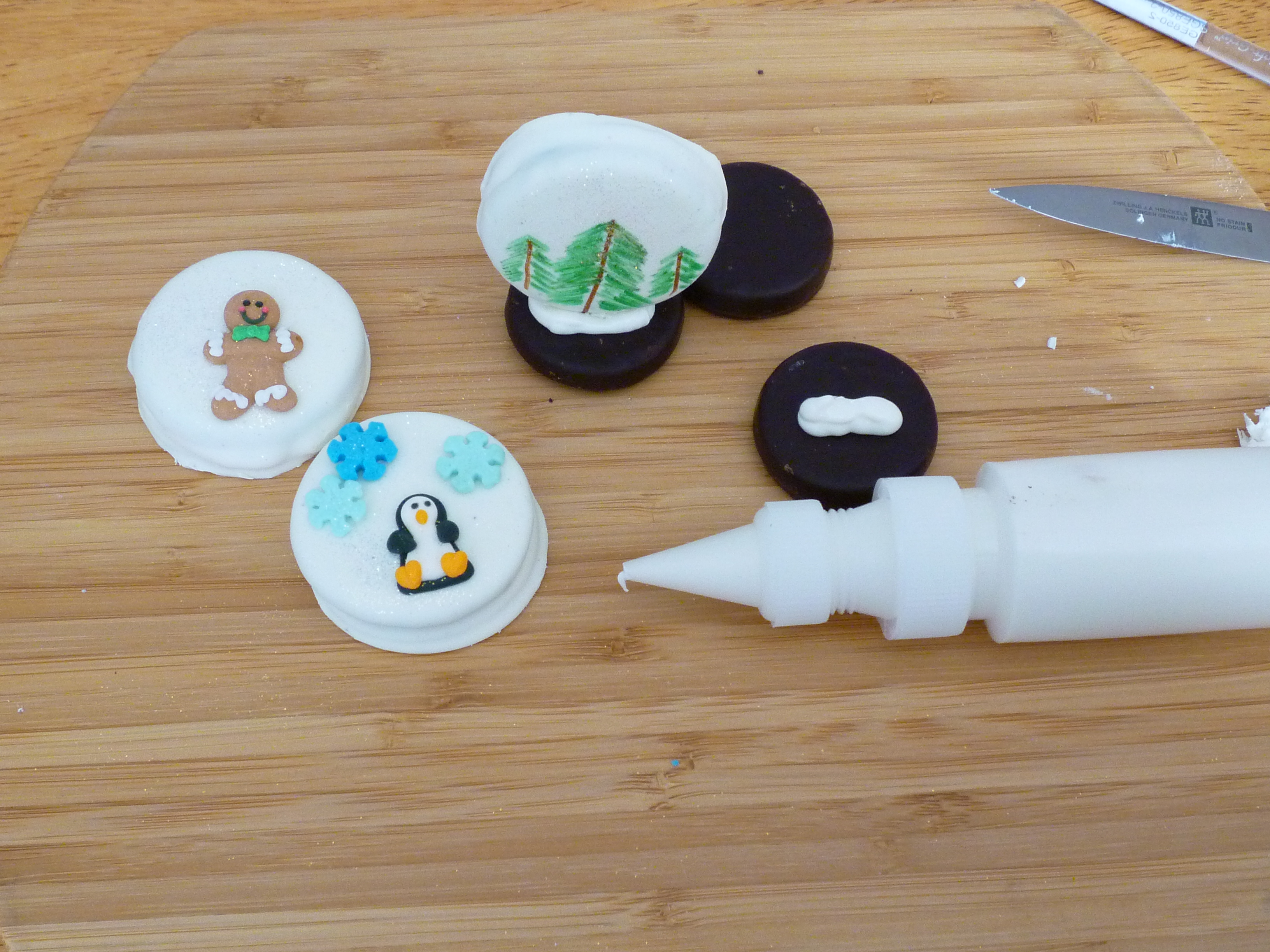 - Oreo cookies covered in white chocolate (make your own or use ready-made)
