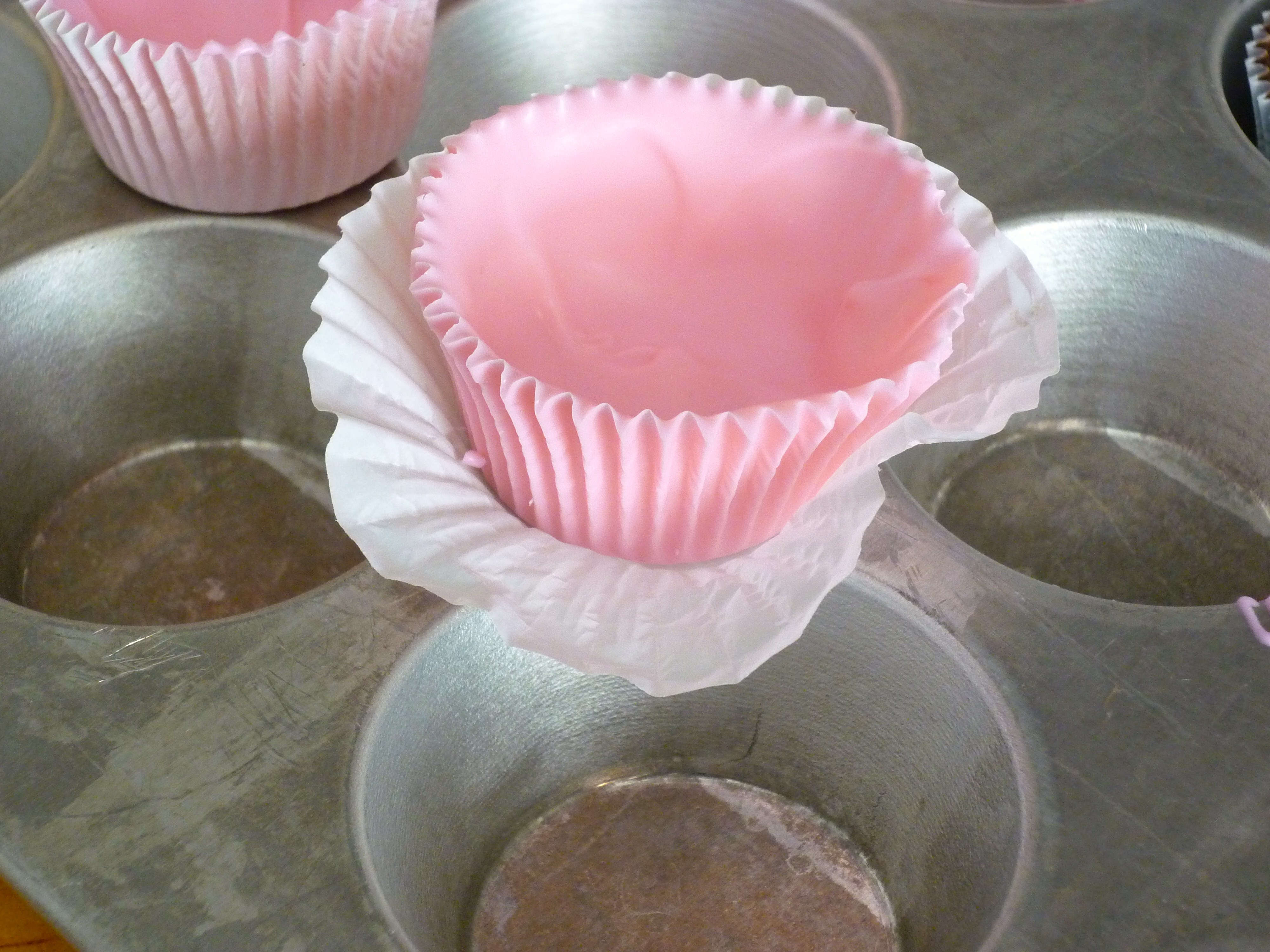Smooth the candy up the sides of the paper. Do a thin coat and let it set up, then repeat. I used the back of a teaspoon, but use what is good for you (small paint brush?) …