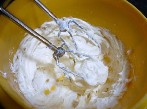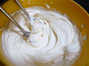 2. Add vanilla and cream, beat well, until very creamy and thickened.  Place in fridge until ready to use.