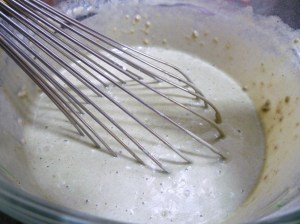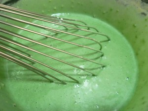 Now add the wet mixture to the dry mixture … there will be some small lumps … and it’s not green enough …