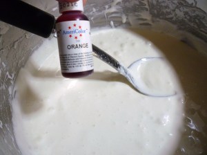 Add food coloring … I used Americolor Orange soft gel paste