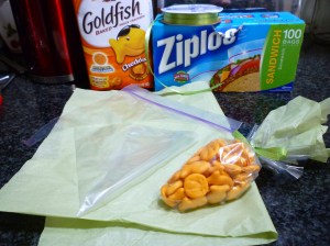 My carrots have goldfish and basketball crackers … I didn’t know they made such a thing!  (Note to self – read labels in the future)