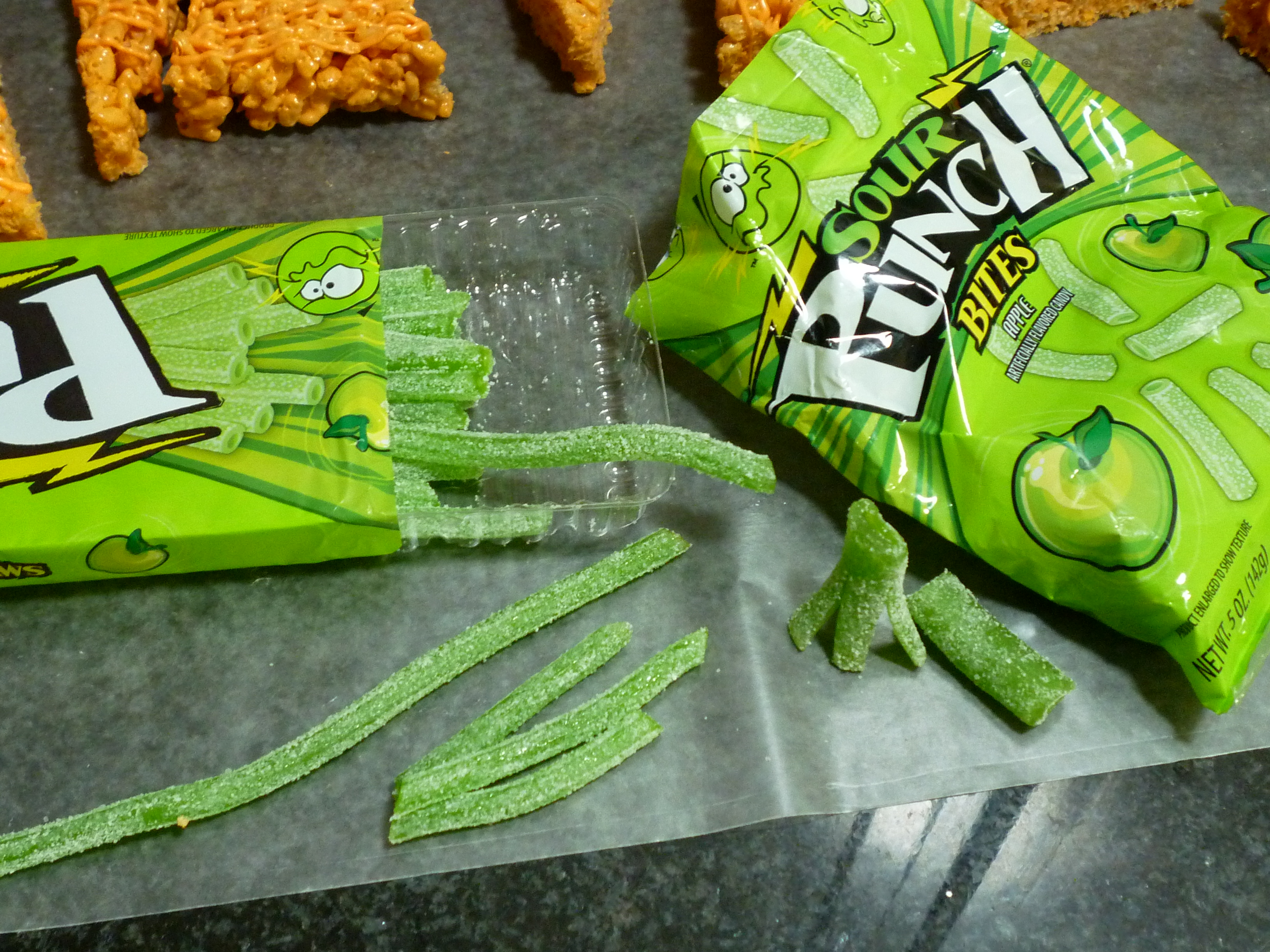 Cut the green candy into desired lengths …