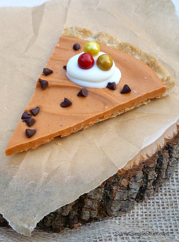 I don’t normally serve my pie with a candy pumpkin on top … since this isn’t really pumpkin pie … figured it was OK here. This is just a fun little treat … hope it puts a smile on your face 🙂