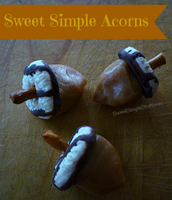 Hello everybody! I am home from vacation … happy to be home, but miss vacationing and visiting with family. The supplies for these Acorns were sitting on my kitchen counter when I left home … was dying to make them, but ran out of time. While visiting my hubby’s sister in Tennessee, I bought more supplies and made them for her grandkids. The kiddos were so cute … I was taking photos for you and they were taking photos too! It was like these Sweet Simple Acorns were surrounded by paparazzi! Let me tell you why I call them the best ever … they’re sooooo simple and fast to make …