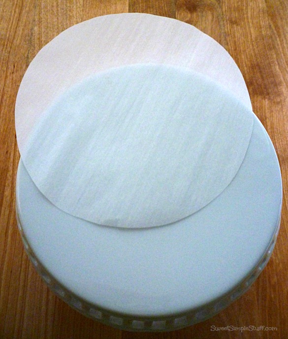 After making all the trees, I started creating a winter scene on a small cake plate. To make serving easier, I lined the plate with parchment paper. First, I cut a piece of parchment paper a little smaller than my plate … used four dots of melted candy to hold the parchment in place … smeared some melted candy as snow … sprinkled some non-pariels …