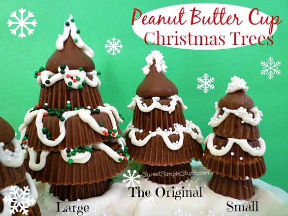 Two years ago, December 3, 2012, I made and posted a Christmas tree using Reese’s Peanut Butter Cups and a Hershey’s Kiss. I didn’t realize at that time how popular my invention would become! I’ve seen them recreated (some with variations) on other blogs, websites and even a magazine cover. Today’s post is long overdue … if one tree is good … more must be better! Earlier this week, I was making gifts for friends that involved these trees and it just made sense to use different sizes. The gift was an edible winter scene used Reese’s Peanut Butter Cup Christmas Trees, the original, plus two new sizes!