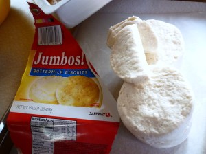 1 tube refrigerated biscuits (Jumbo or Grands – 8 count)