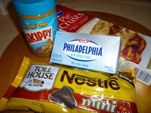 I made this pie to take to Rich and Gwen’s (very old long time and very good friends) house for dessert … after swimming and dinner. Well, it was like a comedy act. I was running behind schedule … as usual … I phoned and asked Rich if I could bring the pie, half made … he said “sure” … the message was conveyed to Gwen that I was bringing half of a pie. No swimming took place … the Peanut Butter Addict left his trunks at home (sitting by the front door) and I haven’t been in a bathing suit in about 100 years or was it 100 pounds ago (but let’s not go there). However, I finished making the pie at their house and tried to take photos for this post with a dead camera battery. So, the photos are not great … but the pie sure tasted good. It got a 4 thumbs up!