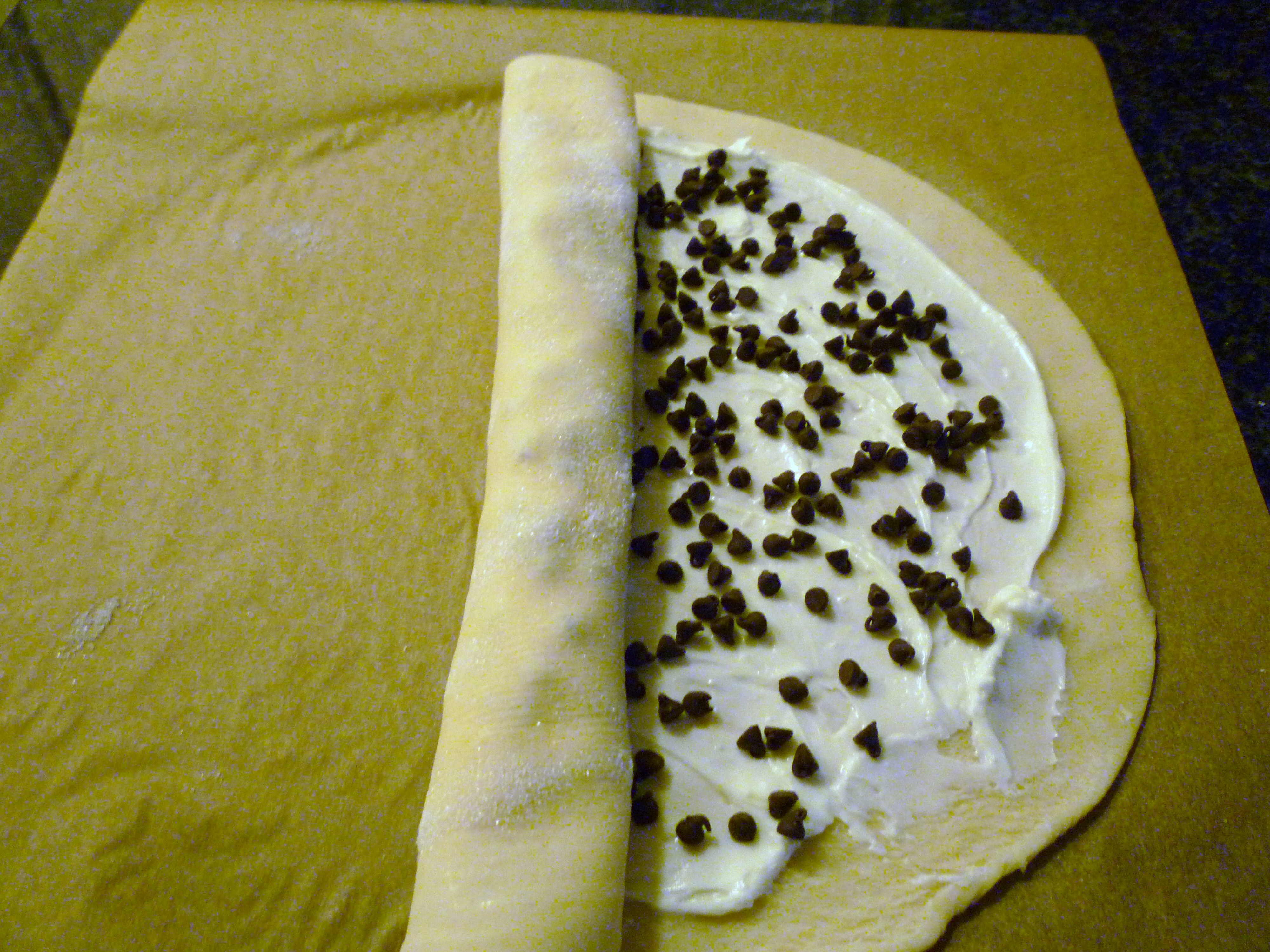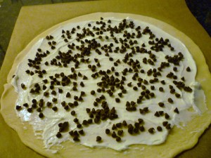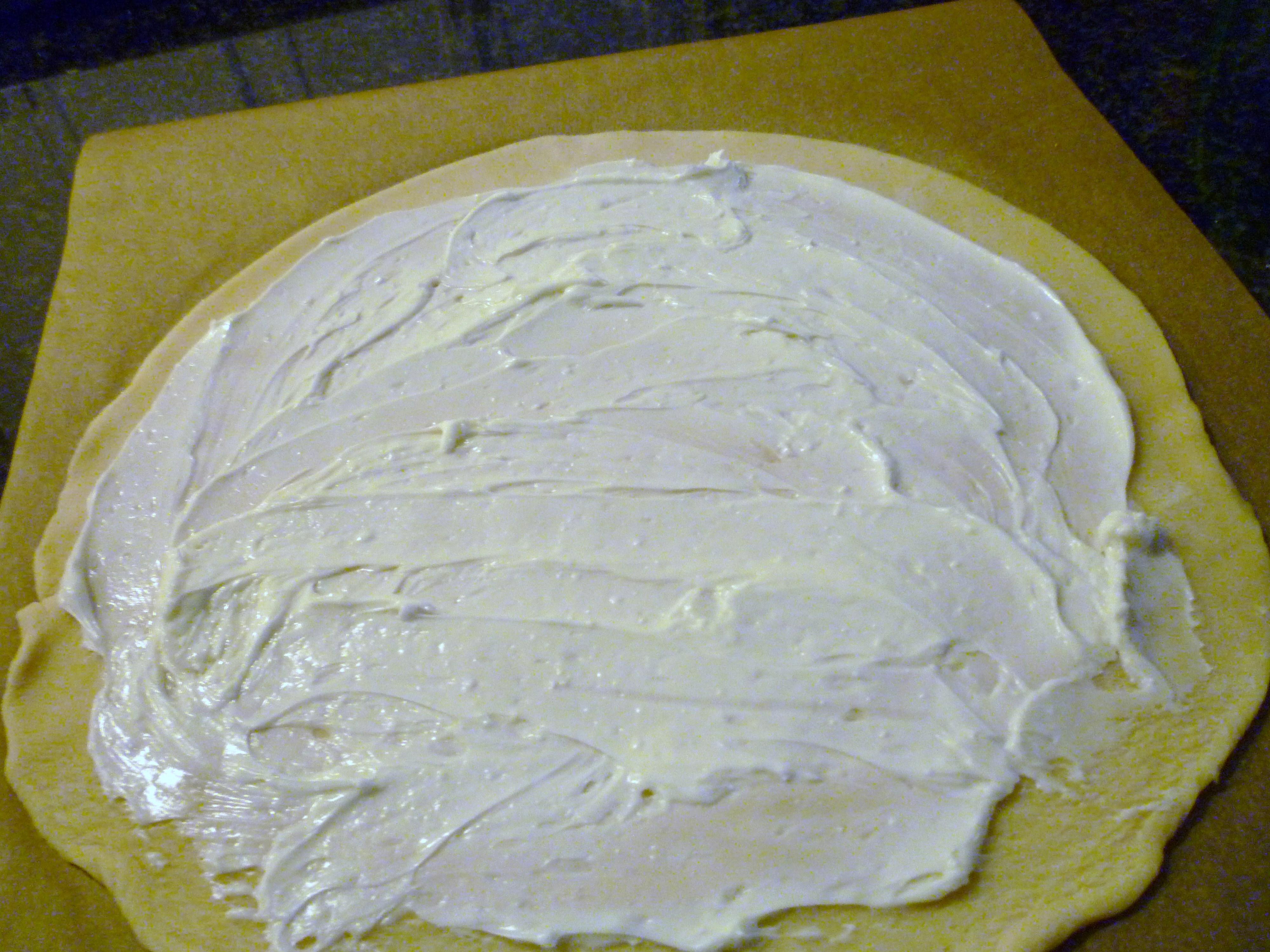 Spread the cream cheese mixture on the crust … and put it back in the fridge …
