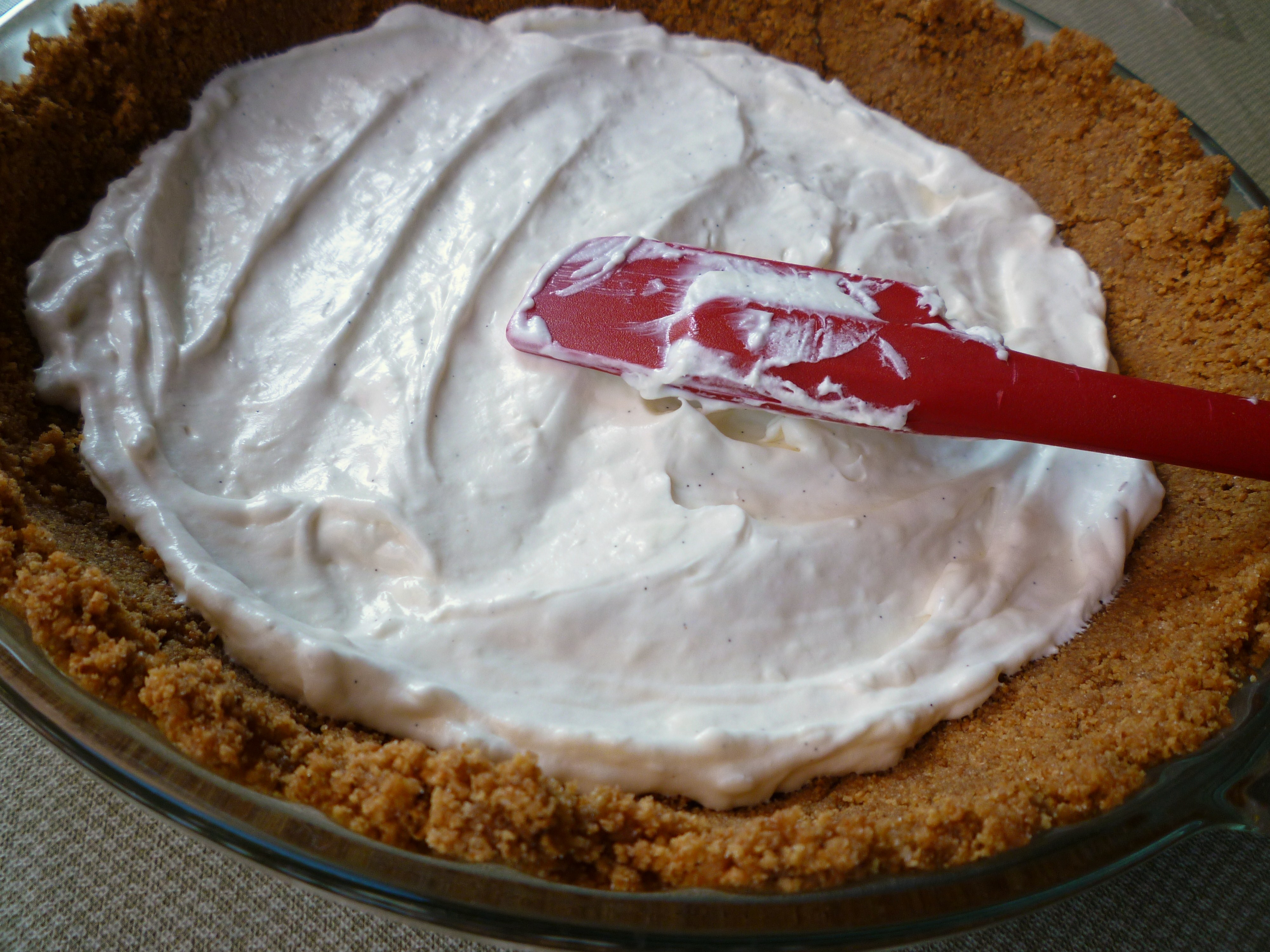 We were impatient … the pie should have chilled longer before cutting … but the flecks in the whipped cream look good!