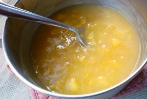 If you want to be really fancy, strain the mixture at this point to remove the chunks of fruit … I didn’t do it … I don’t mind them … in fact I like them.