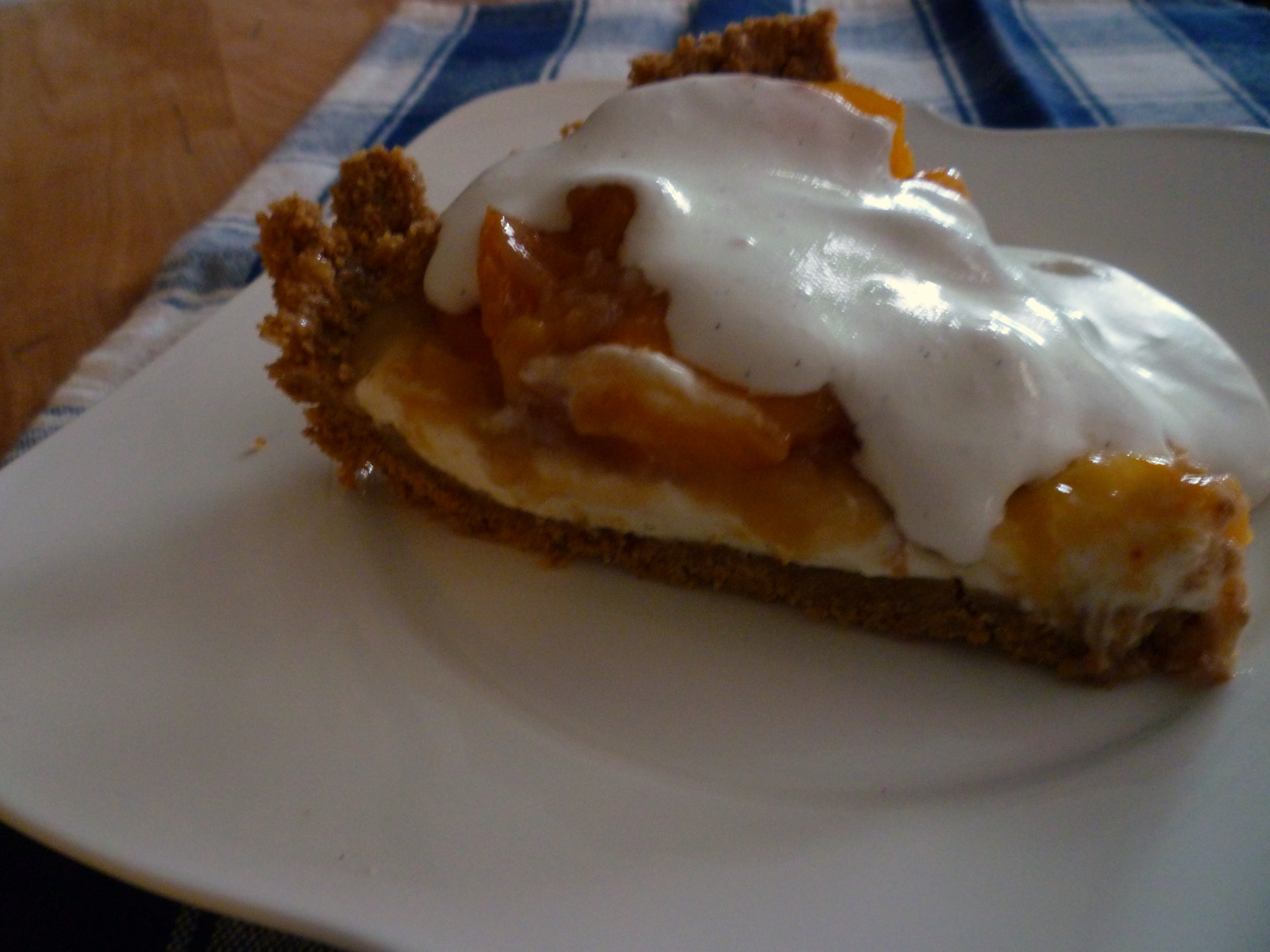The pie looks better, bad lighting and the heat did a number on the whipped cream! Sorry!