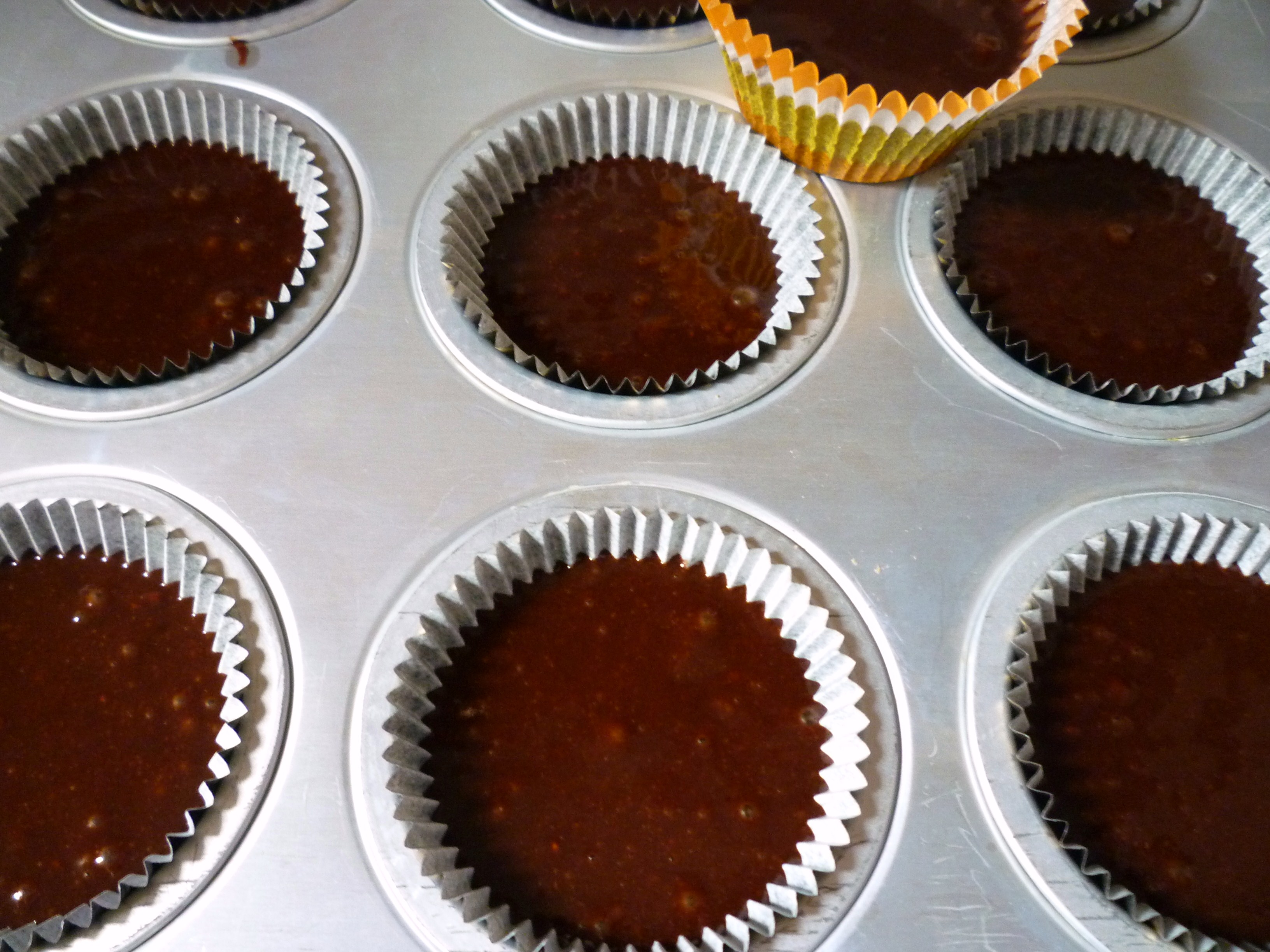 I followed the directions on the box and filled cupcake papers with the brownie batter. I got 13 cupcakes from a mix that made a 9″ x 13″ pan of brownies …