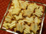 Make the cookie dough, roll and cut … (This cutter is about 3″ … can you tell that it has had a long hard life and probably got smashed in a drawer at some point?)
